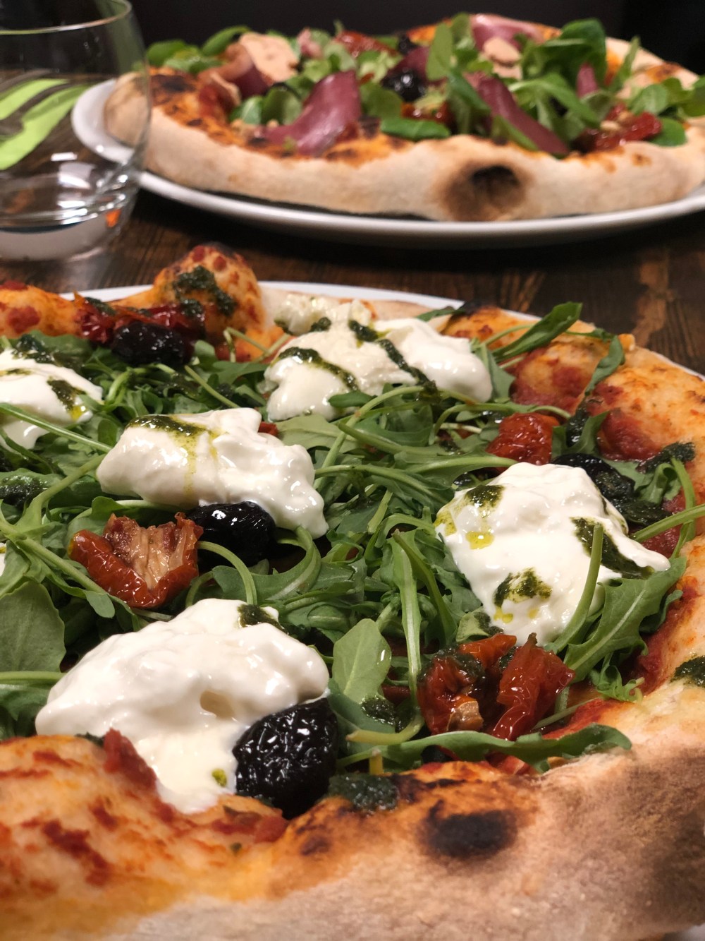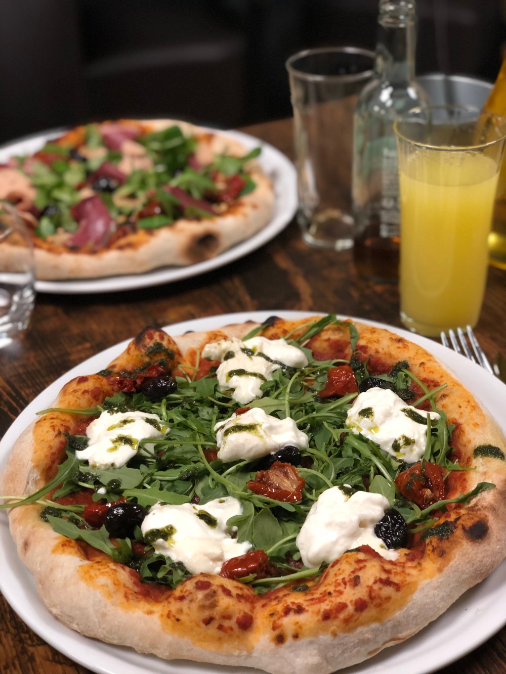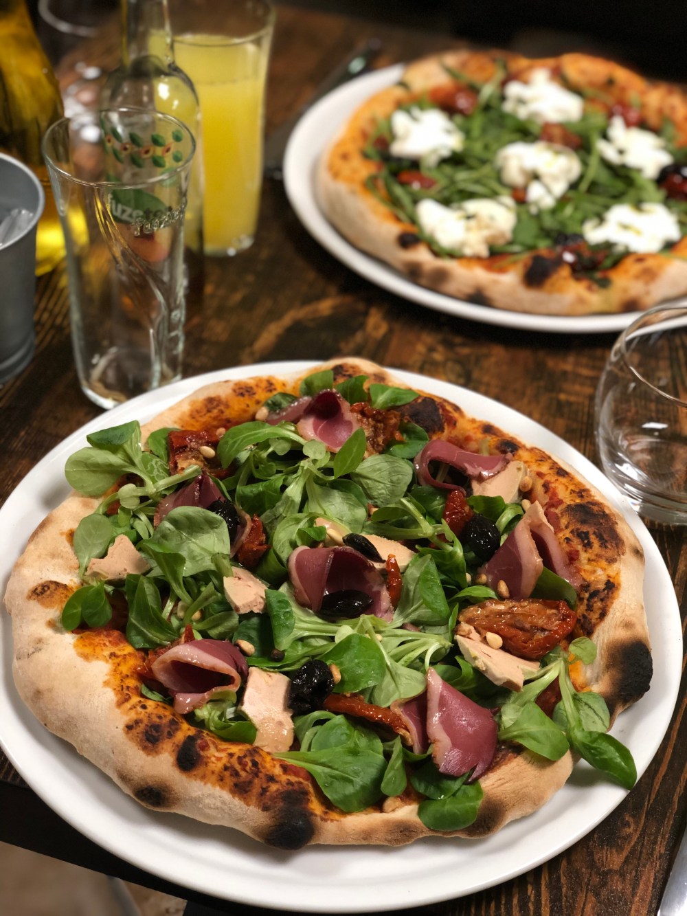 A la lecture de l’ardoise mon cœur flanche pour la Burrata, la valeur sûre, et mon compagnon opte pour la pizza Sud Ouest foie gras, magret fumé, pignons grillés… On salive déjà…