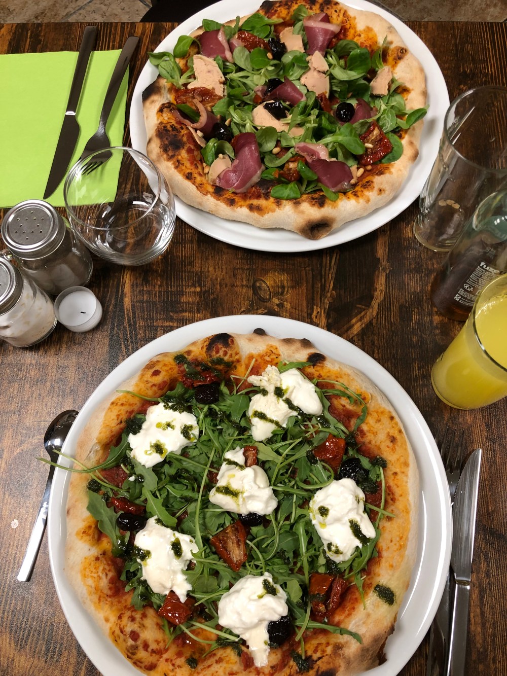 Pâte fine et légère, sauce tomate douce et goûteuse parfaitement assaisonnée, la burrata est crémeuse à souhait et le foie gras et le magret sont d’une superbe qualité et sur la pizza ça marche!